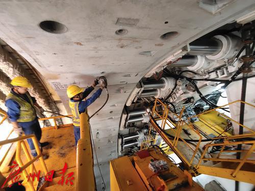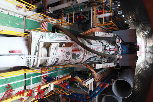 “白云先锋号”大直径盾构机由刀盘、主机、设备桥和配套台车组成。