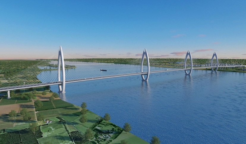 北江特大桥主桥长1440米,为双索面混凝土四塔斜拉桥,横跨北江,连接清城区横荷与清新区山塘,是清花高速项目的关键控制性工程。