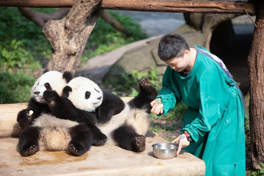 据悉,大熊猫龙凤胎“渝可”“渝爱”出生于2022年7月22日。2023年,重庆动物园开启大熊猫“二顺”龙凤胎征名活动,并正式确定“渝可”(哥哥)“渝爱”(妹妹)为龙凤胎兄妹的正式名字,哥哥“渝可”个大脸圆,性格安静粘人,喜欢爬树和摔跤,爱吃苹果和竹笋;妹妹“渝爱”个头偏小,性格活泼热情,吃饭一气呵成,爱吃苹果和竹叶。