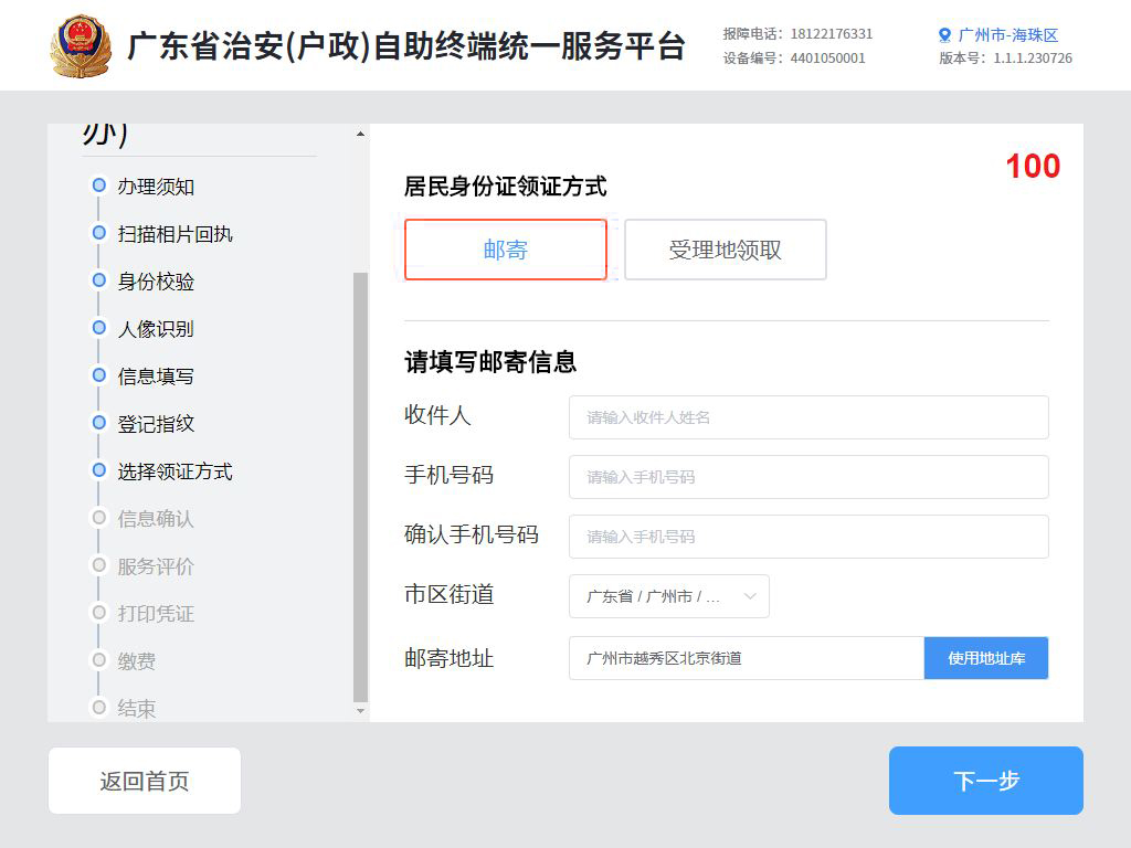 近期,随着毕业季和暑期的到来,广州公安户政窗口迎来了居民身份证业务办理高峰,窗口办事人流大幅增长。广州公安户政部门已积极采取措施全力保障广大市民的办证需求。8月4日,广州公安发布温馨提示:完成居民身份证业务申请的市民,在领取新居民身份证时,除了可以到人工窗口领取外,还可以自愿选择邮政快递方式领取,免去排队等候的烦恼。