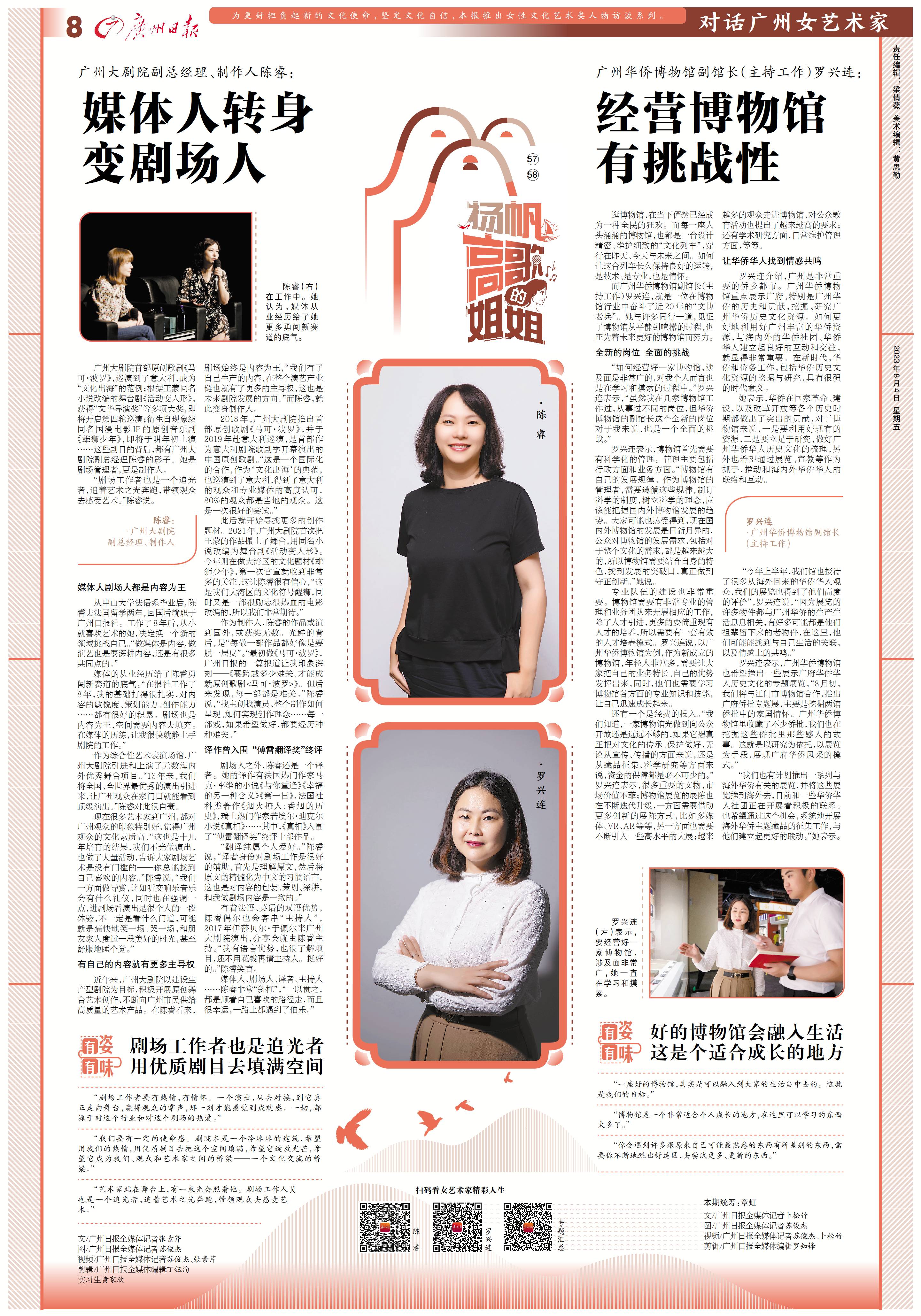 从中山大学法语系毕业后,陈睿去法国留学两年,回国后就职于广州日报社。工作了8年后,从小就喜欢艺术的她,决定换一个新的领域挑战自己。“做媒体是内容,做演艺也是要深耕内容,还是有很多共同点的。”