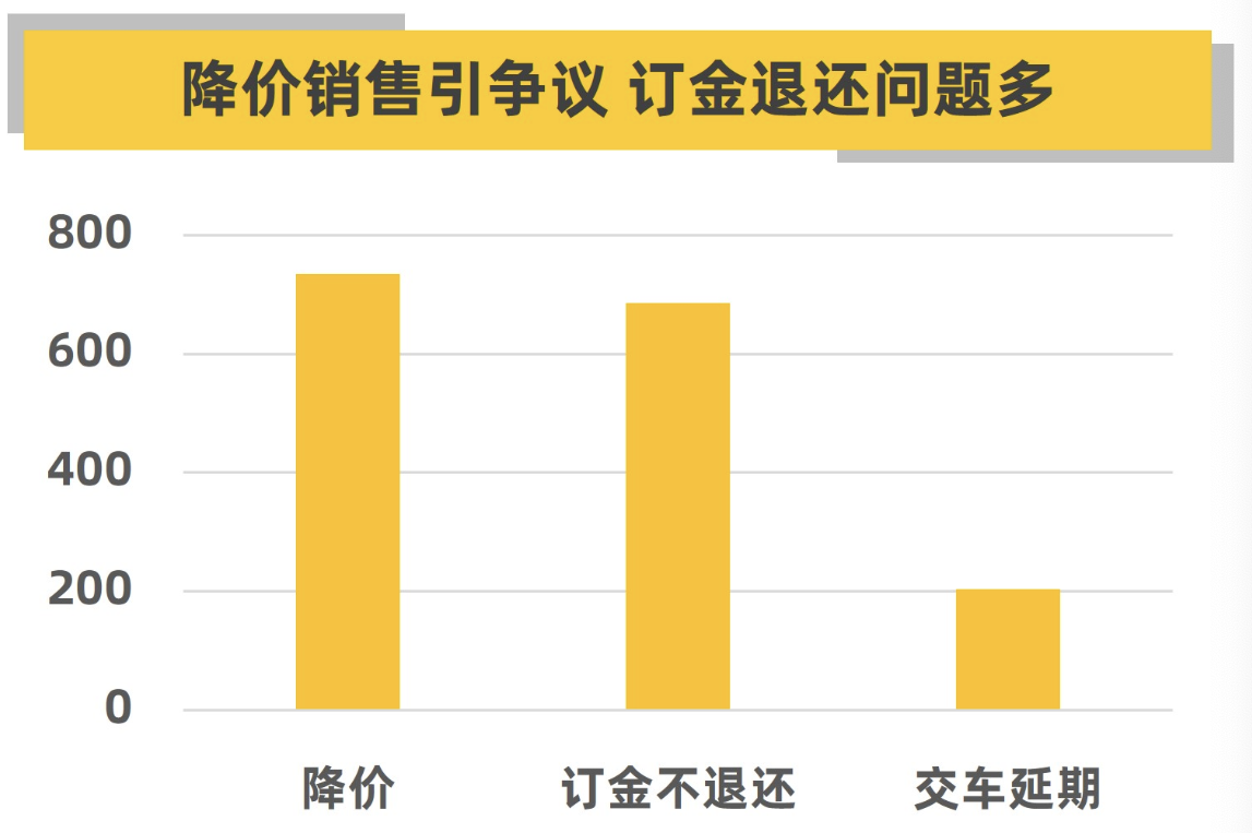 从投诉波动来看,2月15日极氪因单方面增加提车限期同时拒绝退还订金爆发集体投诉;3月16日极氪新款车型变相降价引发老车主不满;4月17日比亚迪海豚降价引发刚提车车主不满;6月20日智己汽车爆发集体投诉,大量车主投诉4月发布会展示的车辆功能无法兑现,导致购买的车辆在很长一段时间内无法如宣传时使用,同时智己汽车出台政策,回收早期车主权益,引发大量车主不满。