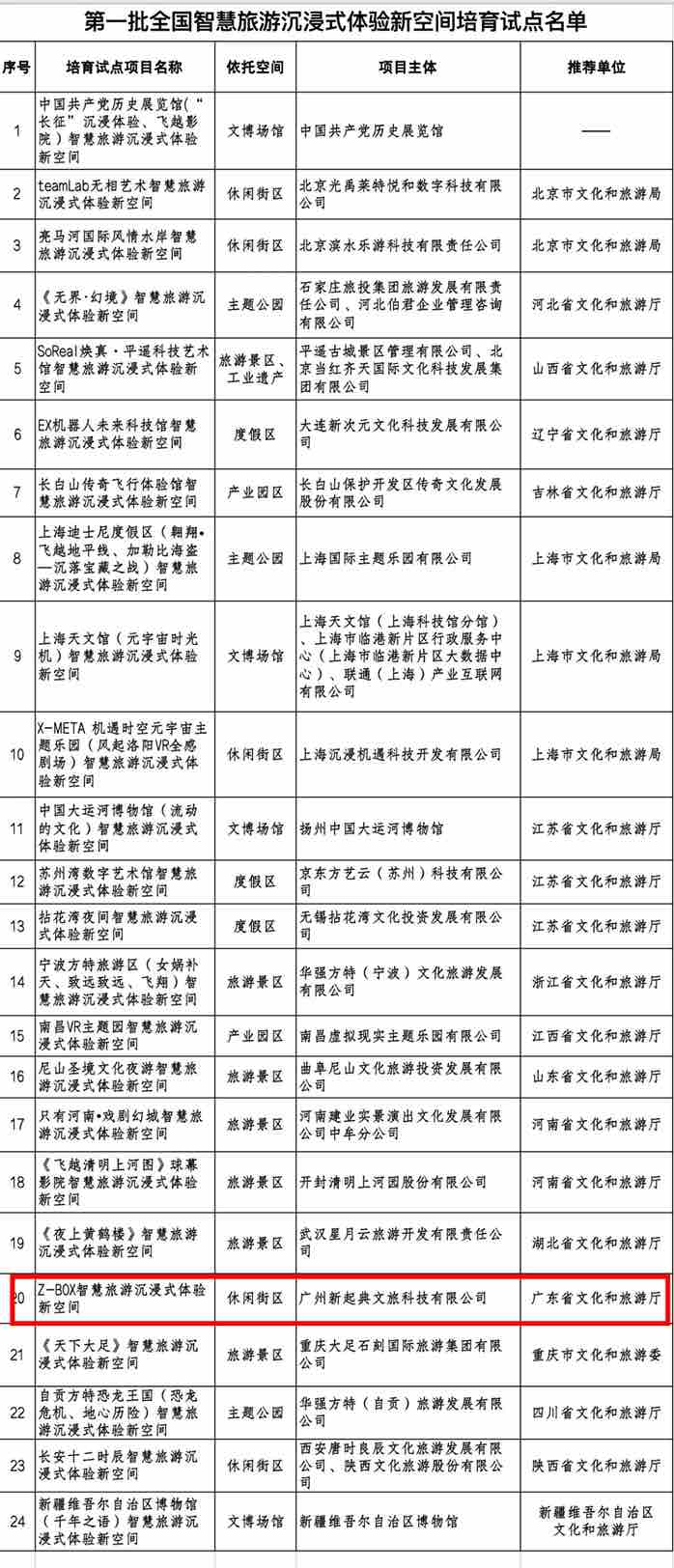 据悉,为推动数字经济和旅游经济深度融合发展,培育发展智慧旅游新产品、消费新场景,根据《文化和旅游部办公厅关于开展智慧旅游沉浸式体验新空间推荐遴选暨培育试点工作的通知》,在自愿申报、省级文化和旅游行政部门推荐的基础上,经专家评审、向社会公示,文化和旅游部确定第一批全国智慧旅游沉浸式体验新空间培育试点名单。