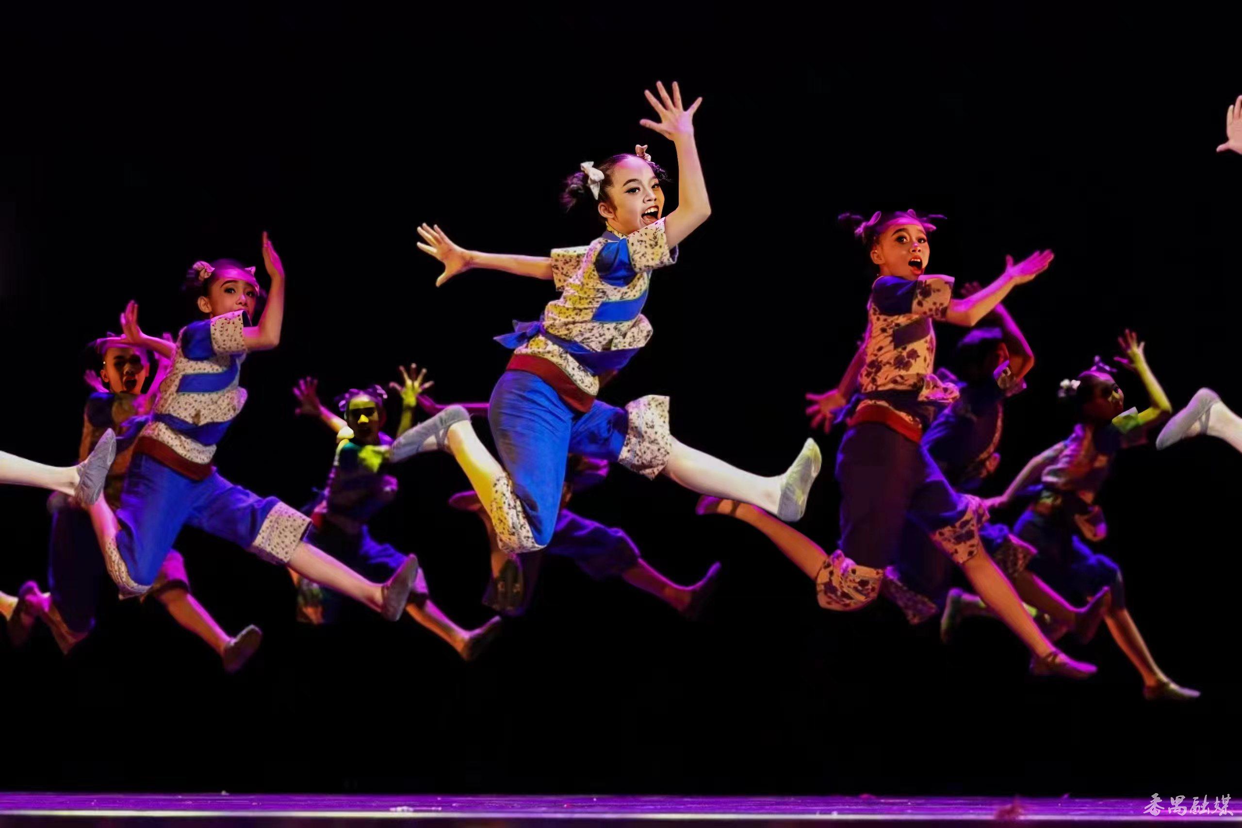 抓鸡、赶鸡、喂鸡、护鸡……《围龙屋下》以客家围龙屋这一岭南非遗元素为背景,演绎了一群在客家围龙屋里长大的孩子们穿梭在围龙屋的门坪或天街上,快乐地在一起与鸡嬉戏的趣事。舞蹈充满生活气息,讲述了在围龙屋生活的客家人团结友爱、温馨和谐,孩子们的童年质朴纯真,洋溢着满满的幸福感。赛场上,小演员们表现出的捉鸡、赶鸡形象生动,欢快且质感十足的表演博得台下观众阵阵掌声,给观众留下深刻的印象。