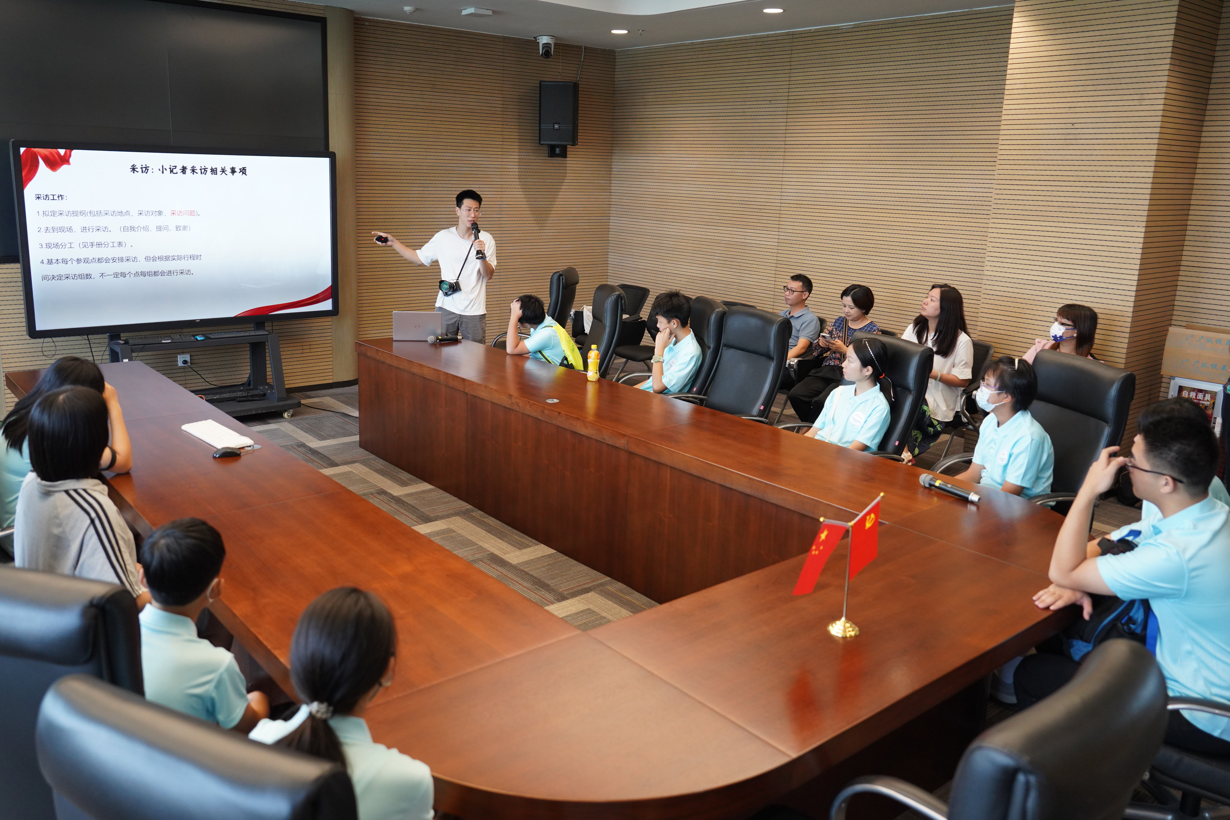 啟動儀式環節結束後,大洋研學導師帶領小記者們參觀廣州日報融媒採編指揮中心,並在編前會議室給學生們進行融媒課堂、行前說明及答疑會。