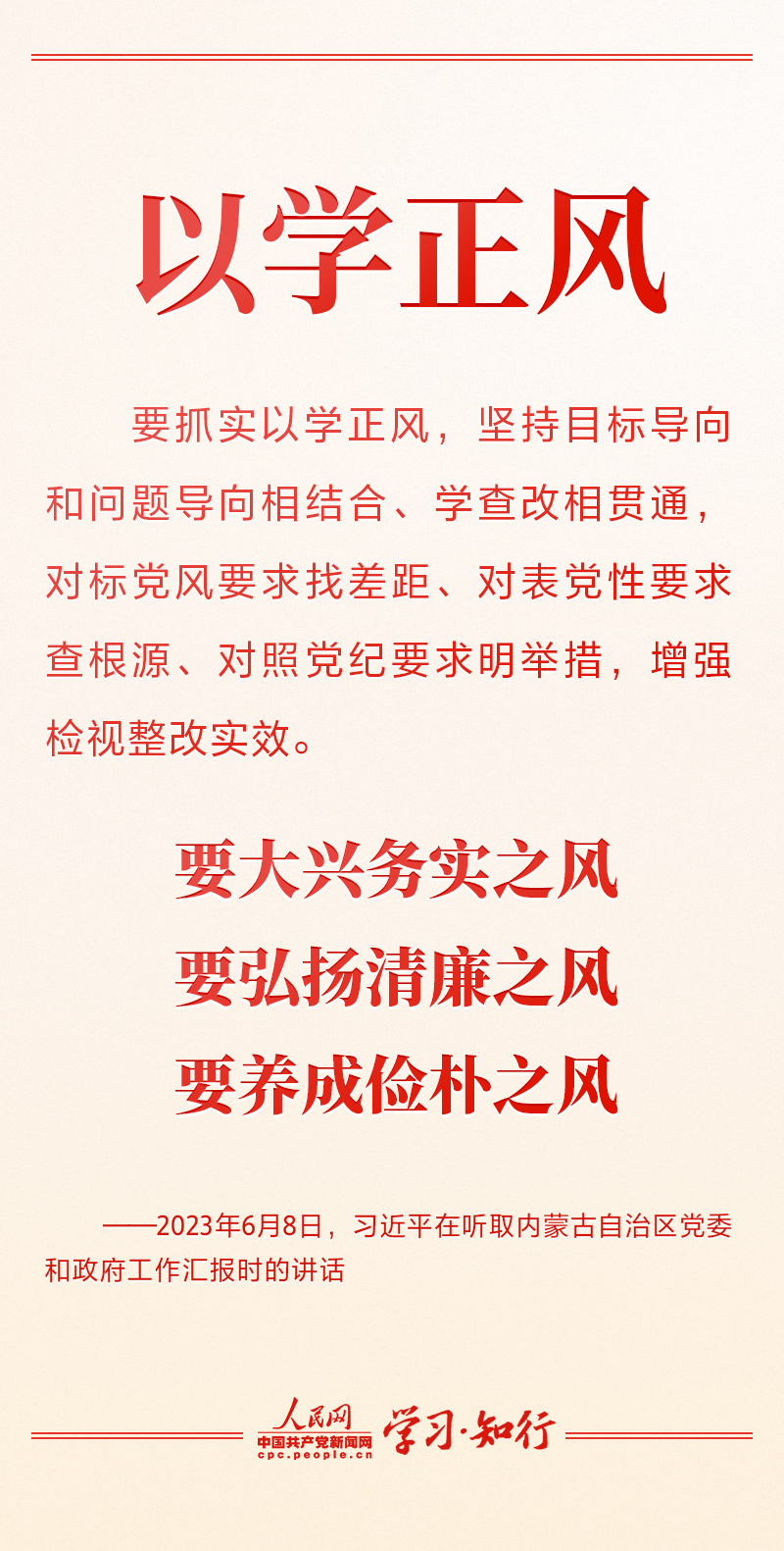 今年以来,习近平总书记先后在广东、陕西、内蒙古、江苏等地考察调研,分别对主题教育根本任务中“以学铸魂、以学增智、以学正风、以学促干”四个方面作出深刻阐释,四堂生动的党课不断推动主题教育深入开展、取得实实在在的成效。