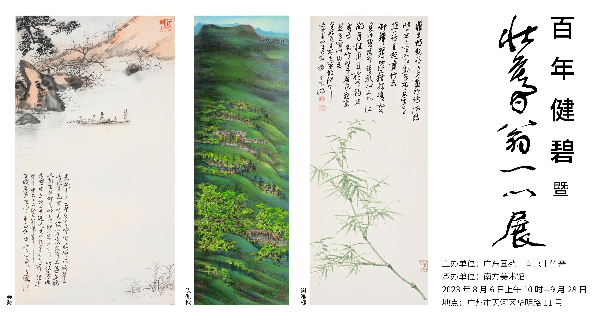 由广东画苑、南京十竹斋联合主办,南方美术馆承办的“百年健碧暨壮暮翁一门展”8月6日在广东画苑开幕。展览展出谢稚柳、陈佩秋、吴灏书画作品数十件。