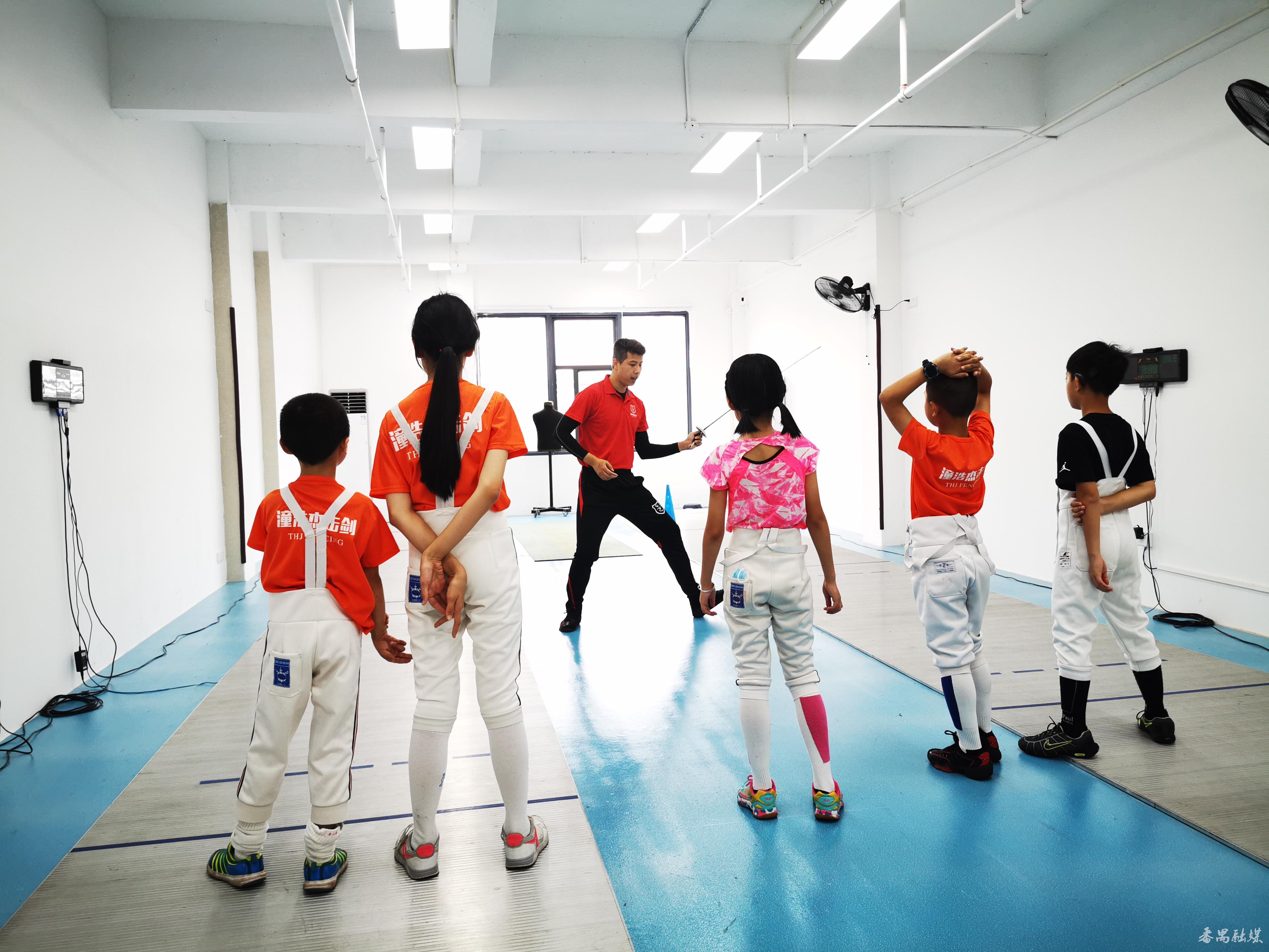 朱俊在指导学员练习击剑技艺