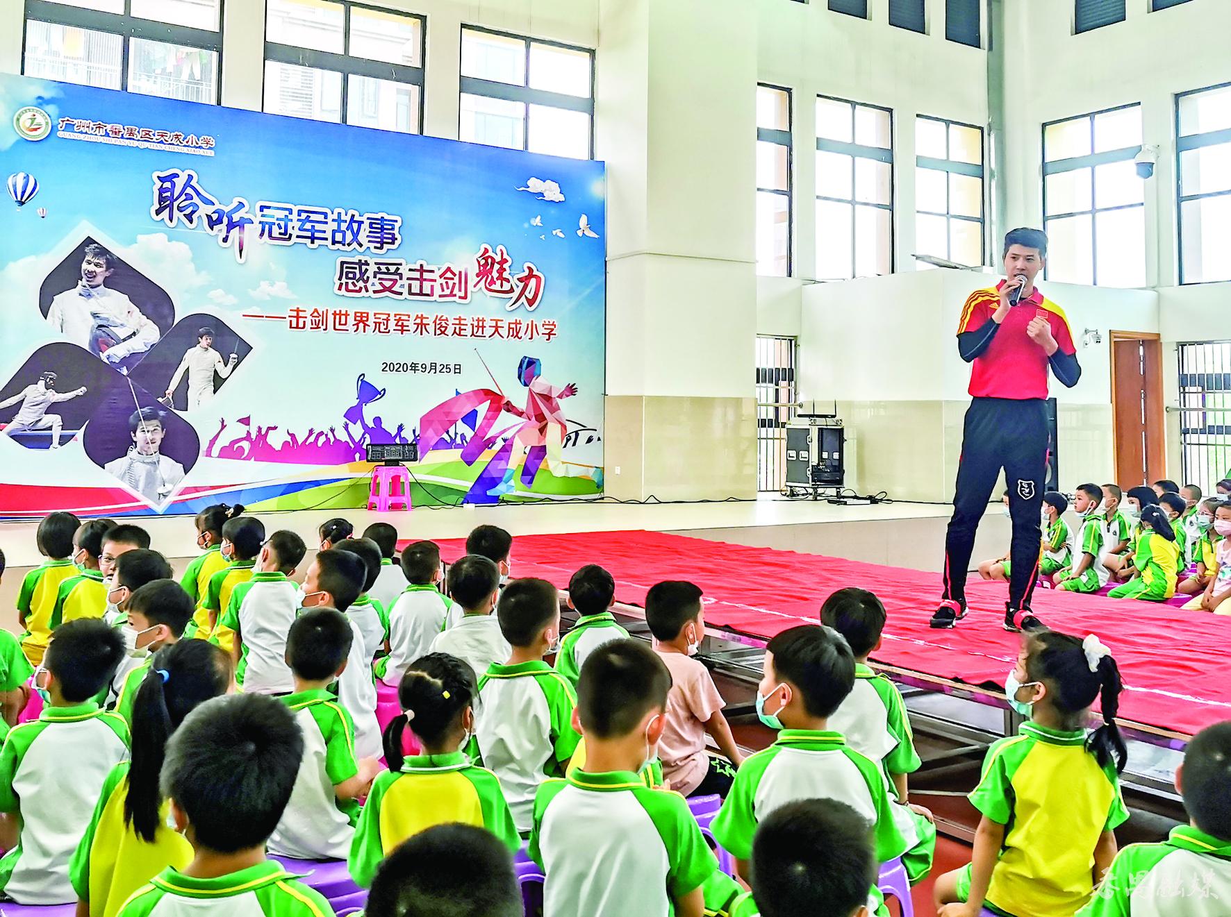 被誉为“格斗中的芭蕾”的击剑运动是集智慧、竞技、体能于一体的运动项目。近30年来,番禺区培养出周汉明、朱俊、黄嘉玲、苏婉文、陈艳红、郭晓俊、陈柏杰、许英明、郭怡琪等多个世界冠军和亚洲冠军,每年向广州市队、广东省队输送多位优秀击剑运动员。一代又一代的番禺击剑人让击剑运动薪火相传,使击剑运动成为番禺竞技体育皇冠上的名珠,擦亮了番禺城市体育名片。近日,记者走访了严国庆、朱俊师徒,感受他们为击剑运动接力传承做的努力。