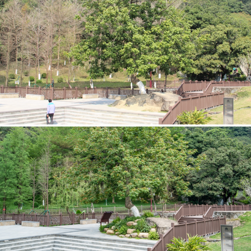 为优化公园景观设计,提升公园景观品质,黄埔对听琴石流泉、罗汉溪寻幽等区域景观进行升级改造。