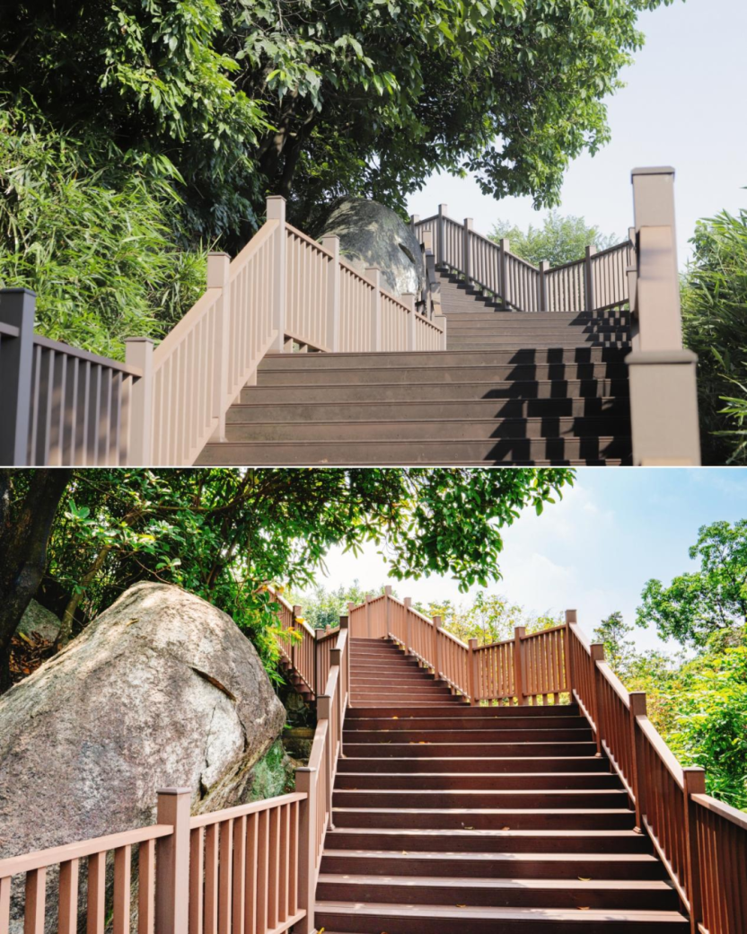 ➫ 来到登山小径,因为两侧增种了耐阴地被,宛如一条绿色丝带攀岩而上。爬山时满眼绿意,心旷神怡。