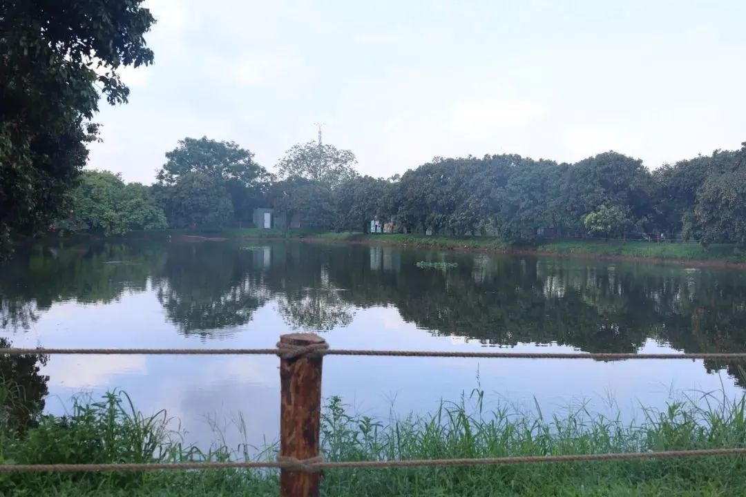 近期,广州天气炎热,而进入华圣公园后,园内绿树成荫、绿意萦绕,让公园温度更加适宜,空气也格外清新怡人。