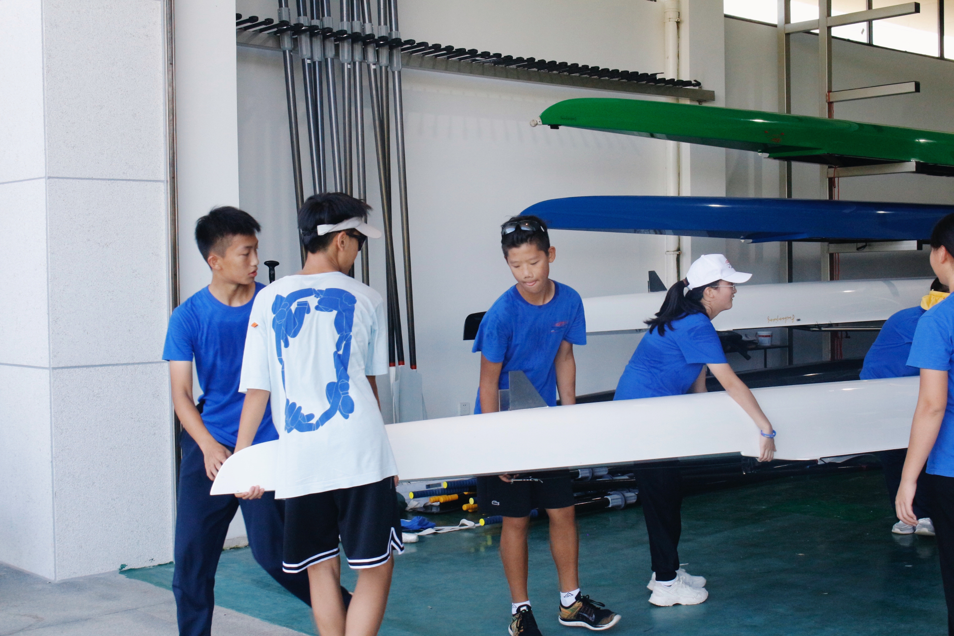 “在所有的比赛项目中,只有赛艇是背向终点的。背向终点,后退只为向前。”汤少文介绍说,与大家熟悉的很多舟艇运动不同,赛艇是唯一一项运动员背向终点“倒着划”的水上项目。在比赛中,运动员通过向后拉固定在桨架上的桨来进行划水,使舟艇前进。由此,赛艇运动特点也要求团队成员需要有十足的默契度。于是,在日常训练中,汤少文有意识地培养孩子互帮互助的习惯,正如她所说:“从搬赛艇这个过程,就能看出来这是不是一支成熟的队伍。”