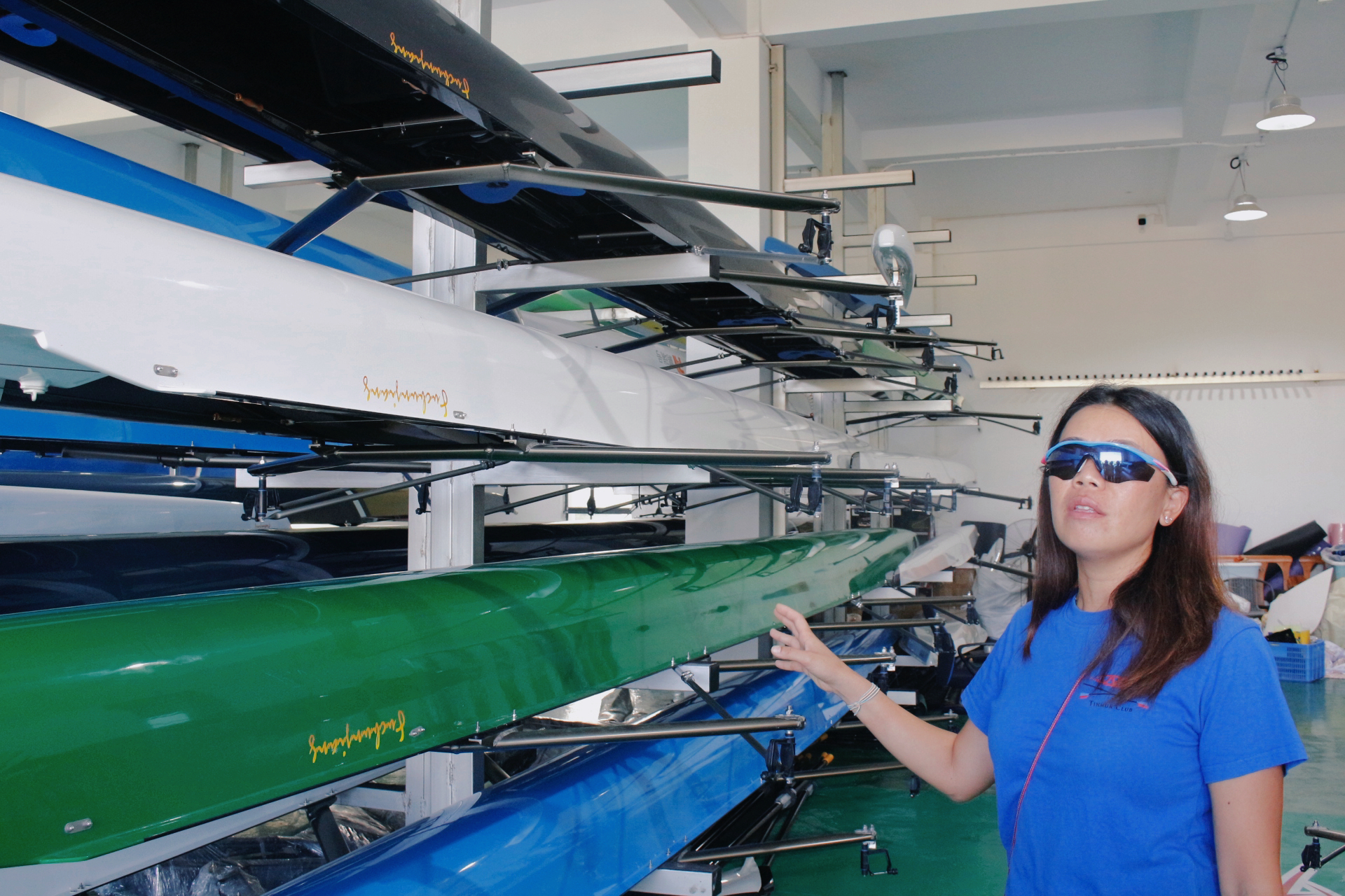 清晨,汤少文早早地推开赛艇中心大门。她习惯先检查一下仓库,仓库里摆放了许多赛艇、桨和运动装备,这里也是一个休息场所。汤少文说,如果孩子们没有把这里收拾干净,她就会大声呼喊孩子们出来重新整理,“对于赛艇人来说,这一艘艘赛艇就是自己的好伙伴,要爱惜它们。”