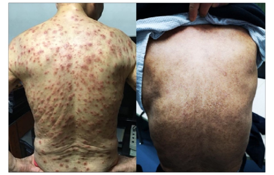 它总在疾病早期披着“皮肤病”外衣,一般表现为皮肤上的症状,如红斑、脱皮、干痒等,这些症状使这种T细胞淋巴瘤总被误认为湿疹、皮炎等皮肤病。
