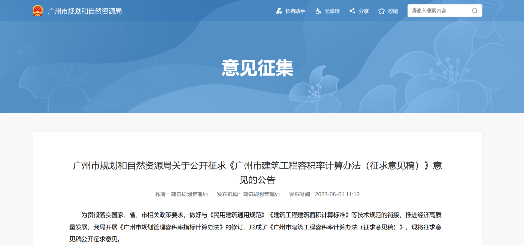 近日,《广州市建筑工程容积率计算办法(征求意见稿)》(下称“征求意见稿”)在广州市规划和自然资源局网站上进行公示。