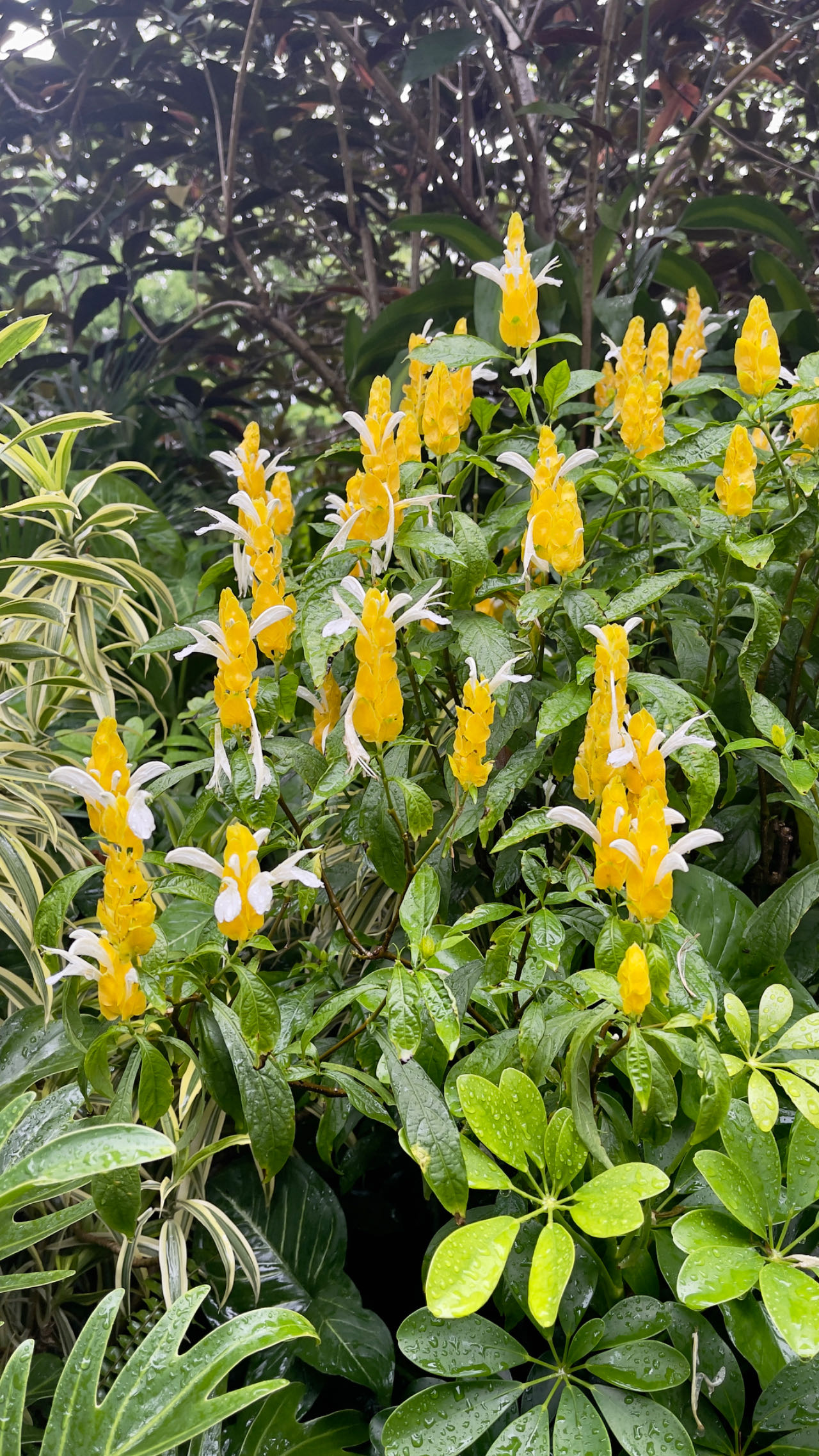 因为花朵长得像栩栩如生的活虾,金苞花也叫“黄虾花”“金苞虾衣花”;又因为层层叠叠的黄色苞片似宝塔,于是又叫“金包银”或“黄金宝塔”。这种植物原产自墨西哥、秘鲁以及南美洲部分地区,为常绿的亚灌木植物。其分枝多而细,叶子很大,叶端突尖,叶面粗糙全缘。金苞花的植株特别低矮,一般高30至50厘米,因花期长、植株挺立且耐风吹雨打,常被作为庭园观花植物植于花坛、庭园造景、盆栽等。