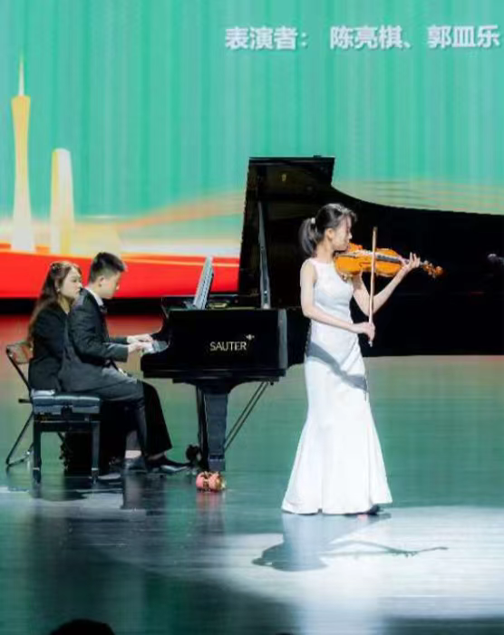 本场音乐会特邀香港著名钢琴家、斯坦威艺术家及舒伯特国际钢琴大赛首位华人获奖者、香港演艺学院钢琴教授岑健威,携同多次荣获国际顶级弦乐比赛大奖的广州知名青年小提琴演奏家郭皿乐、刚被茱莉亚音乐学院录取的羊城优秀钢琴青年演奏家马千翔以及来自拔萃钢琴的孩子们,为现场观众带来了《春江花月夜》《百鸟朝凤》《我和我的祖国》,以及李斯特、肖邦、勃拉姆斯的经典名曲,带领观众感受古典与浪漫交织、民族音乐与西方音乐同台绽放的魅力。压轴演出由穗港演奏家及学员共同奏唱《我和我的祖国》,爱国情怀洋溢。