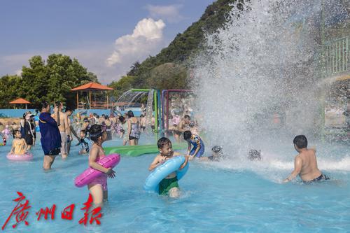 翁源县冷泉滩旅游度假区,各个水池内水花四溅,孩子们享受着夏日独有的清凉。