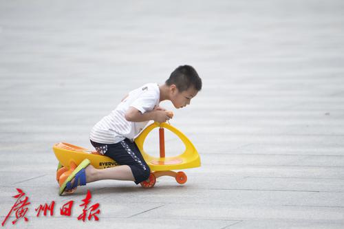 小朋友在广场玩扭扭车。