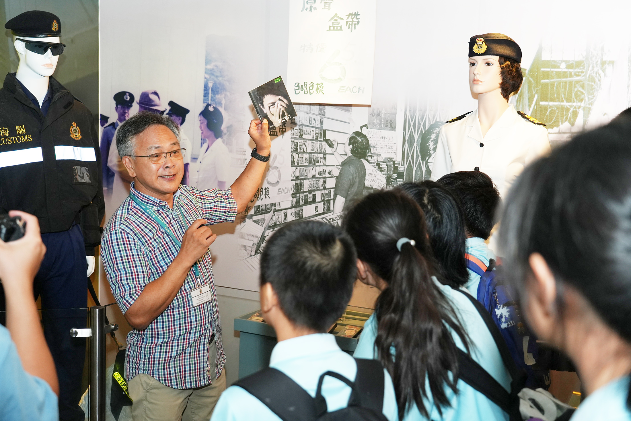退休監督陳漢民向小記者介紹香港海關的百年歷史。