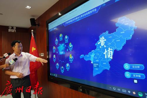 工作人员介绍广州市黄埔区农村集体三资云信息服务平台。