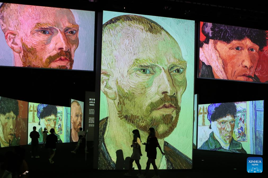 People visit the immersive exhibition "Van Gogh Alive: the experience" at the World Expo Museum at night in Shanghai, July 16, 2023. The World Expo Museum in Shanghai extends its opening hours on every Friday, Saturday, Sunday and holidays from May 12 to Sept 10, 2023. [Photo/Xinhua]