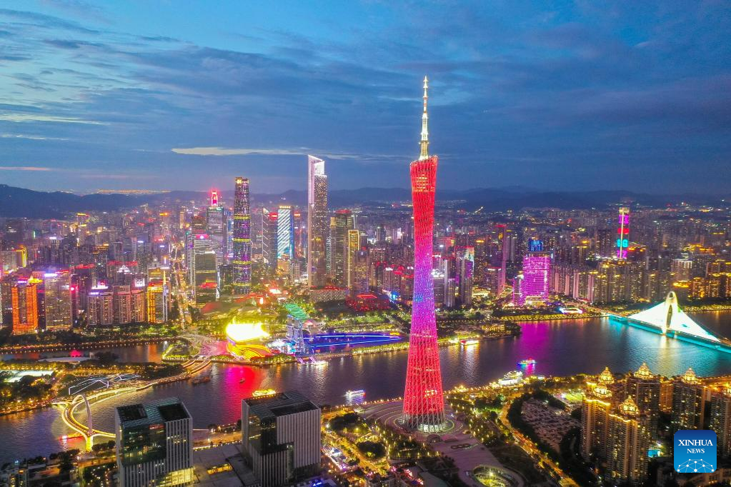 This aerial photo taken on June 10, 2023 shows the night view of the urban areas in Guangzhou, South China's Guangdong province. [Photo/Xinhua]
