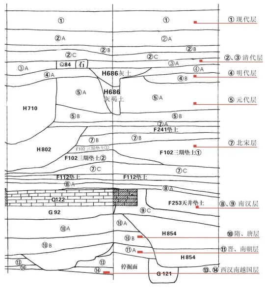 南越国宫署遗址考古地层关键柱剖面图(图/广州日报)