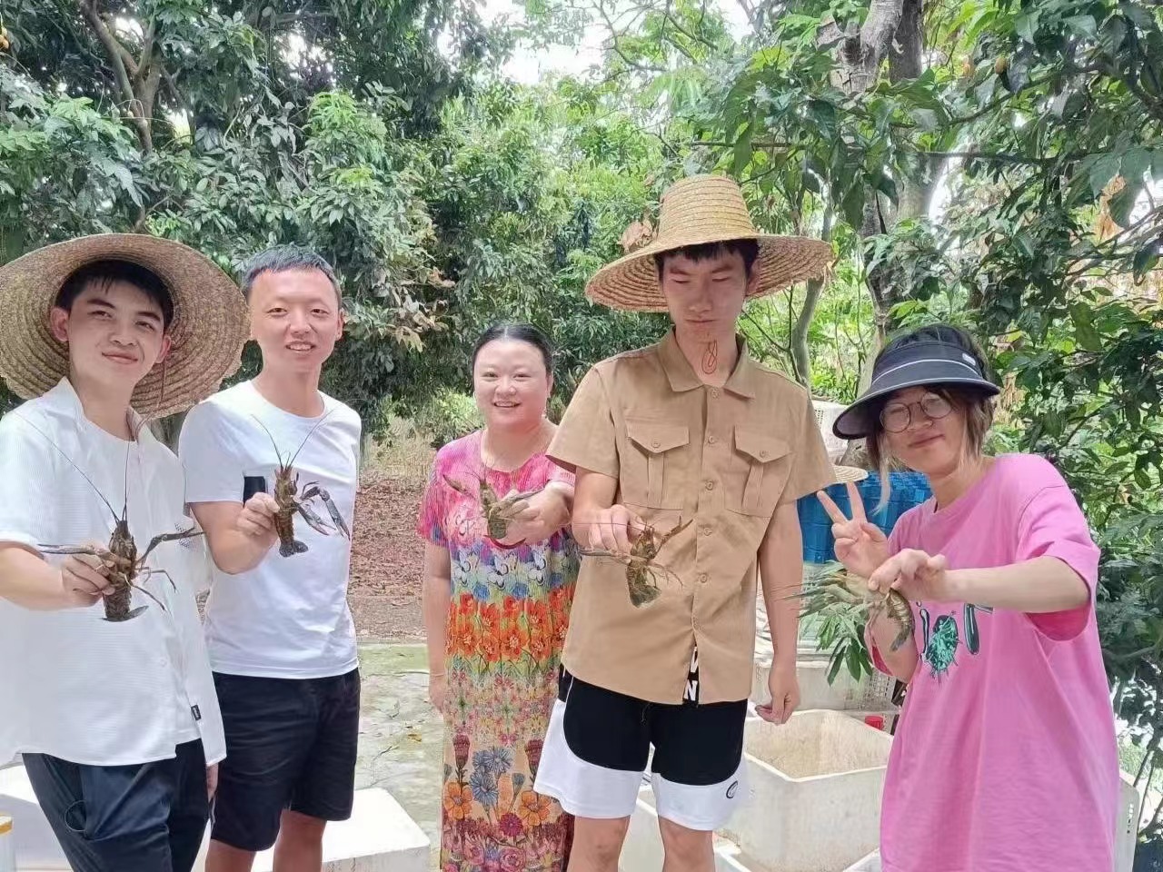 来自社会青年组的学员程皙媛是本地人,也是一家农业科技公司联合创始人,运营着一个澳洲青蓝龙虾的农业项目。本着链接资源、助力家乡农业发展的目标,她积极参与了此次蜜蜂计划的培育项目。结合自身的经验,她在基地主要负责的便是荷塘内养殖的小龙虾预制菜的研发工作。