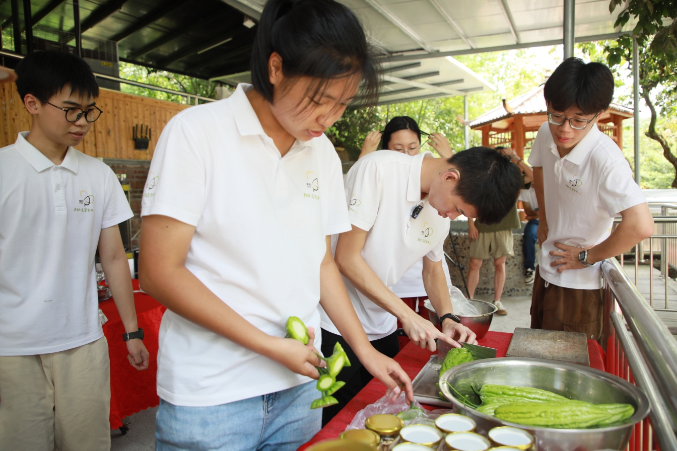 目前,苦瓜主要加工方式有制作泡菜、渍菜或脱水加工等。随着健康饮食趋势的兴起,苦瓜作为一种药食兼用的保健食品,其衍生产品苦瓜干、苦瓜茶的潜在市场不断增大。经过前期到附近批发市场和村镇的走访调研,同时对比网上的同类竞品,蜜蜂学员们为基地的苦瓜干设计了精准的营销方向,并亲自试验最佳制作工序。