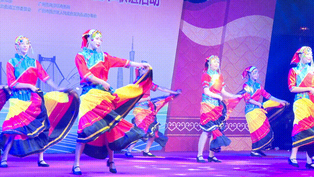 活动现场欢声笑语、精彩纷呈,伴随着振奋人心的旗鼓舞蹈,浓浓彝家风味的《七月火把节》节目正式拉开帷幕。来自广州黄船海洋工程有限公司和广船国际有限公司等企业的少数民族职工代表,在现场给大家带来了彝族舞蹈《欢聚》《阿诗且》和民歌《呼伦贝尔大草原》等彝族和其他少数民族的歌舞表演。