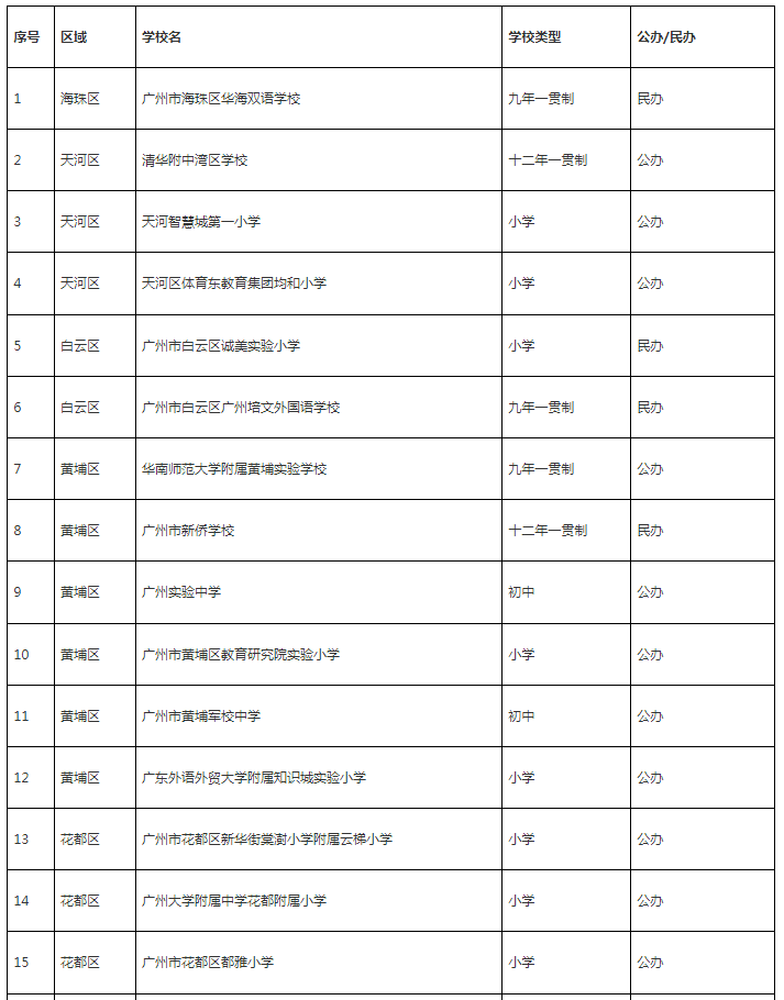 8月11日,广州市教育局发布《关于认定海珠区华海双语学校等29所学校为义务教育标准化学校的通知》,认定20所公办学校,9所民办学校为义务教育标准化学校,以下为通知详细内容。