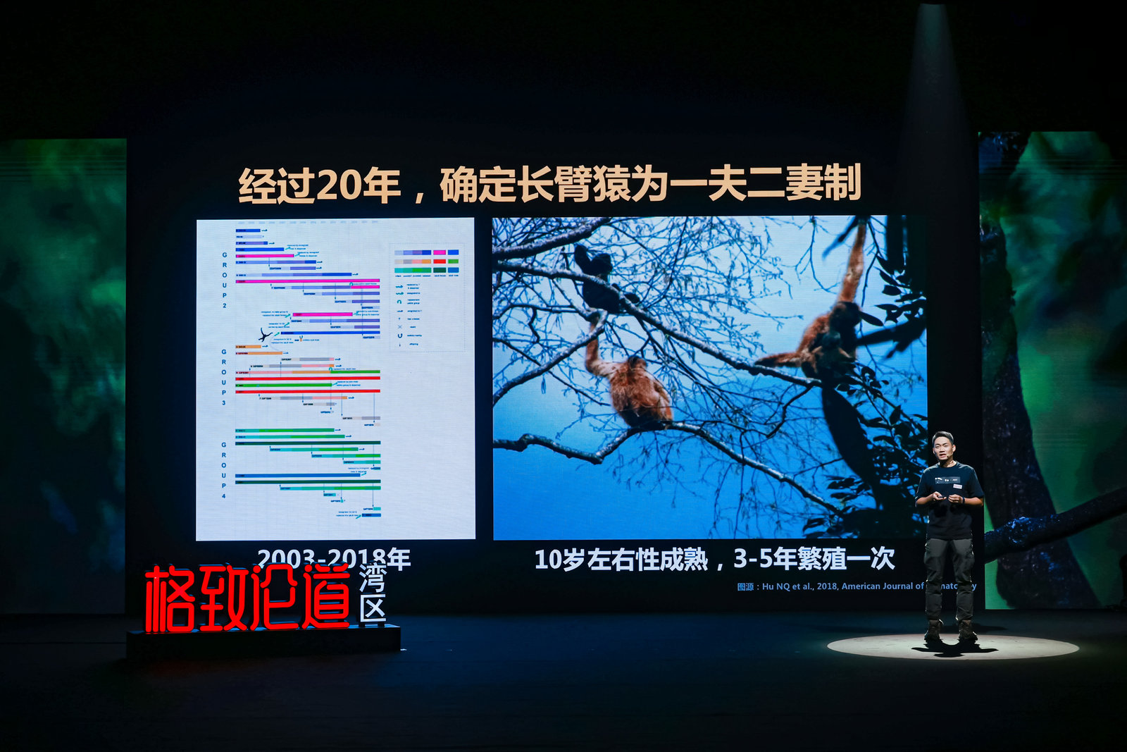 要想保护长臂猿,首先得了解它们的习性。然而长臂猿非常警觉,此前中国并没有长臂猿习惯化的经验,无法习惯化,便无法靠近。从2003年起,中山大学生命科学学院教授范朋飞便开始在云南的无量山区观察西黑冠长臂猿,他花了整整18个月,终于成功习惯化世界上第一群长臂猿。8月12日,他在广州市海珠区举办的格致论道·湾区第24期上分享了这20年的“猿迹寻踪”故事。