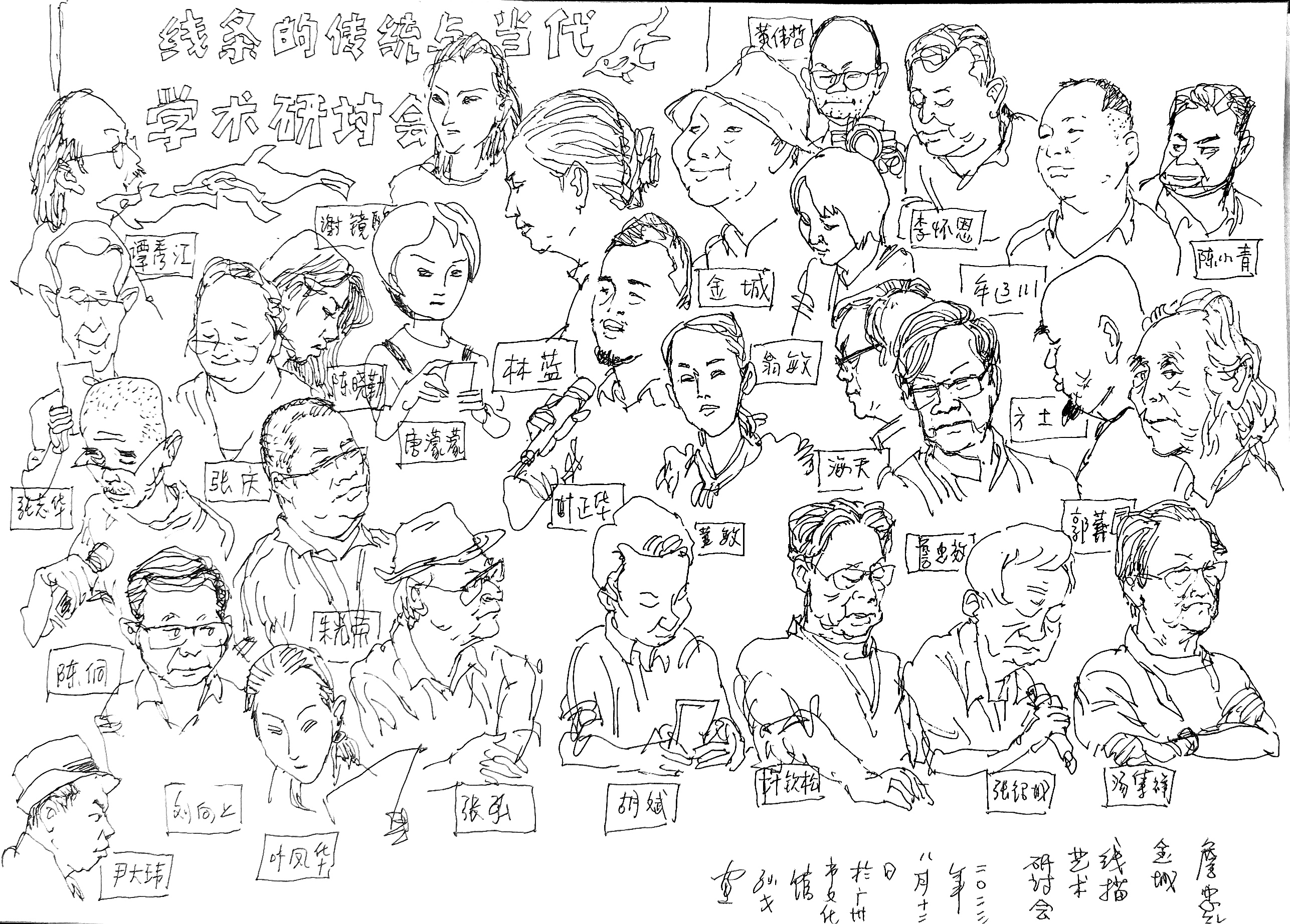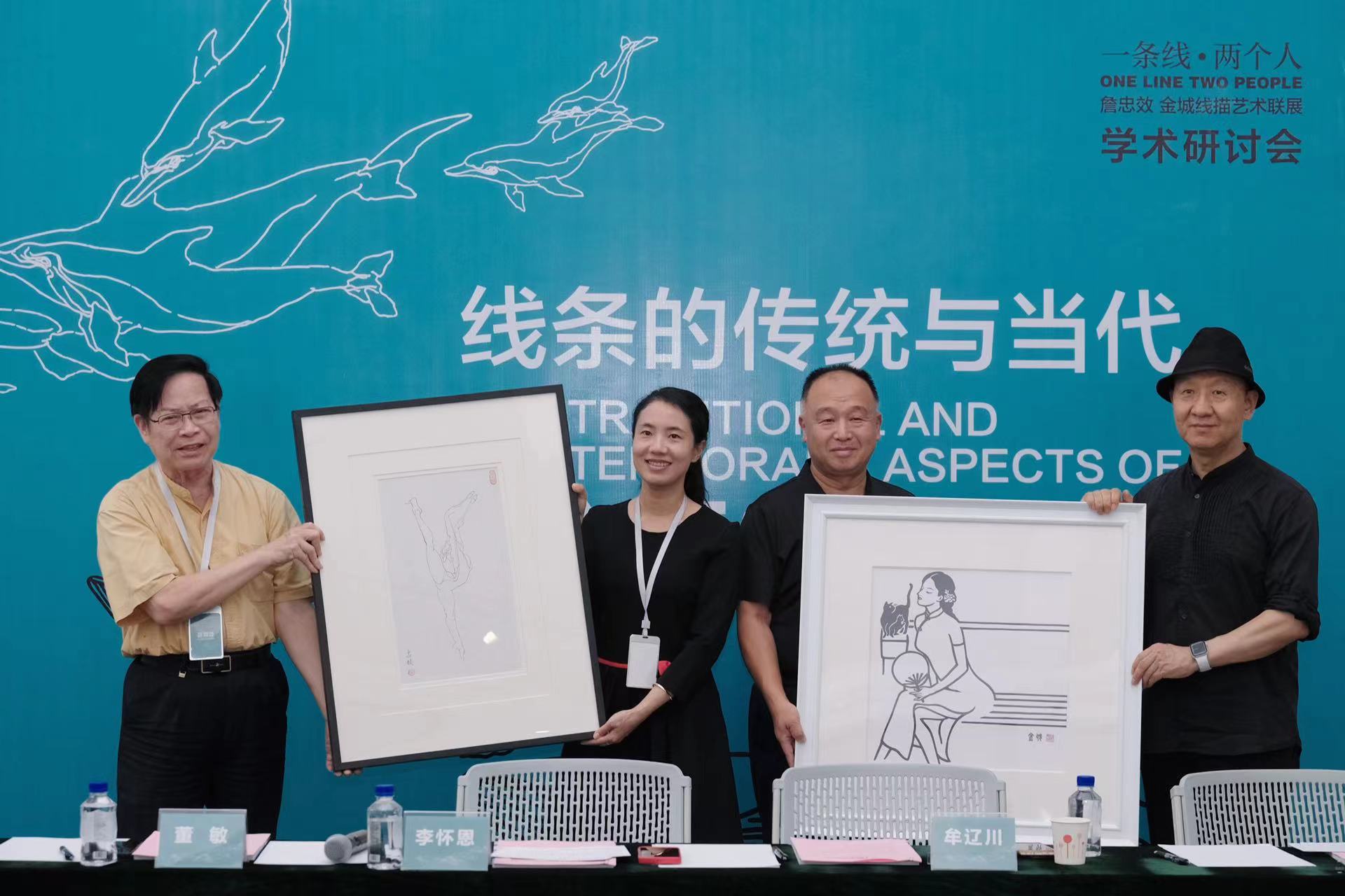 8月12日,在广州市文化馆翰墨园2号厅,由中国国家画院、广州市文学艺术界联合会、广东省美术家协会、广州市文化馆、广州市动漫艺术家协会共同主办的“一条线·两个人——詹忠效金城线描艺术联展”现场,举办了以“线描的传统与当代”为题的学术研讨会。
