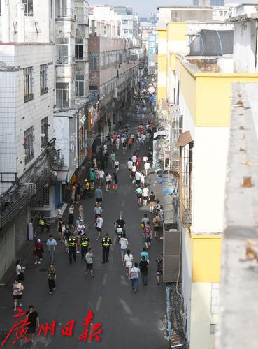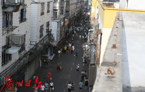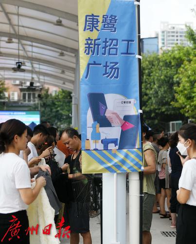 2023年8月14日, 广州海珠区康鹭招工广场(原鹭江球场),小工厂的老板开始在里面招工,工人们有序进入广场,寻找合适的工作岗位。在此之前自发性组织形成的步行街“招工点”不再允许进行临时招工活动,街道上人山人海、车辆难行的拥堵情况大为缓解。