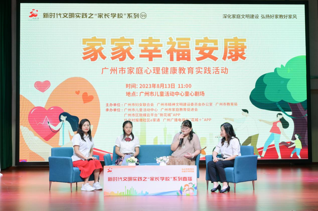 8月13日上午,新时代文明实践之“家长学校”系列(59)“家家幸福安康——广州市家庭心理健康教育实践活动”开播。活动现场邀请到中国心理卫生协会专业委员会委员、中国家庭教育学会家校社共育专业委员会理事、广东省心理咨询师协会家庭教育专业委员会副主任委员黄晓芳、家庭教育讲师龙茜和“羊城小市长”付柳婷同学,她们围绕“家长如何树立科学家庭教育理念和方法”“儿童成长六个阶段的不同心理需求及家长养育的关键要点”等相关话题进行分享。