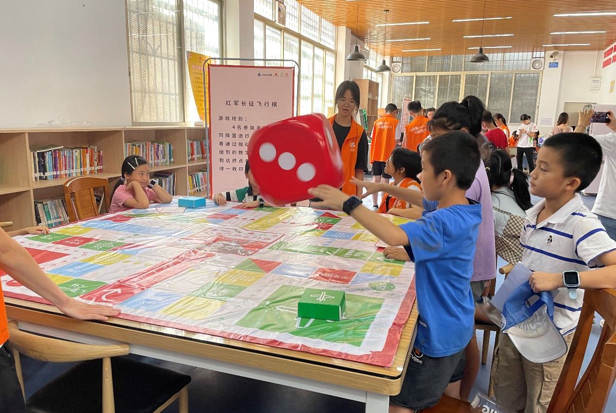“Hello音为爱红色故事会暨红色桌游嘉年华” 公益活动现场设置了6款主题桌游,分别是重走长征路、光辉历程、红军过草地、红军长征飞行棋、红色景点飞盘、党史知识投壶,每款桌游都融入了红色故事,小朋友们都玩得津津有味。