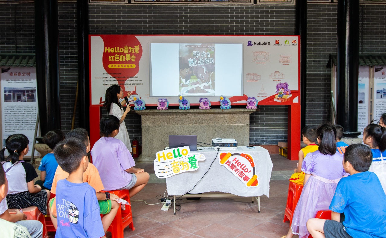 近日,广州市番禺区石岗村南石张公祠里,志愿者小鹏为小朋友们耐心讲解着,近80名儿童及家长在此参与了“Hello音为爱红色故事会暨红色桌游嘉年华” 公益活动,并见证了“番禺区100个红色故事”音频专辑的发布。
