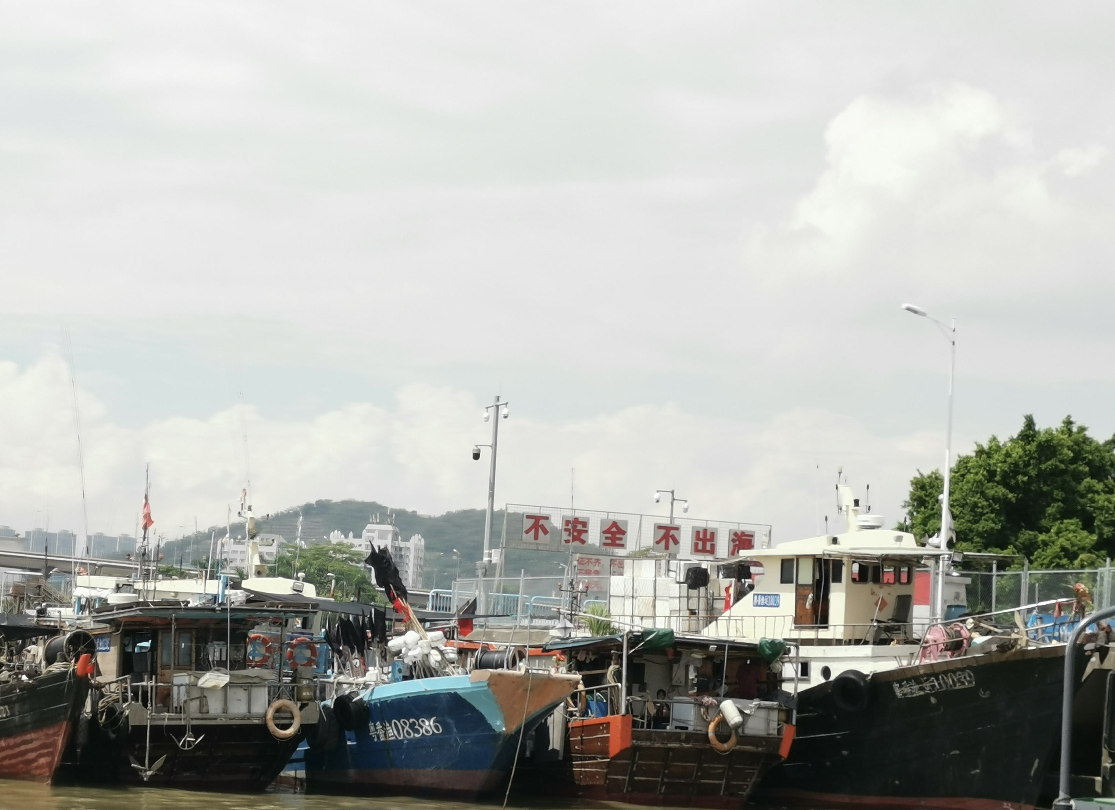 停泊在莲花山中心渔港的渔船整装待发
