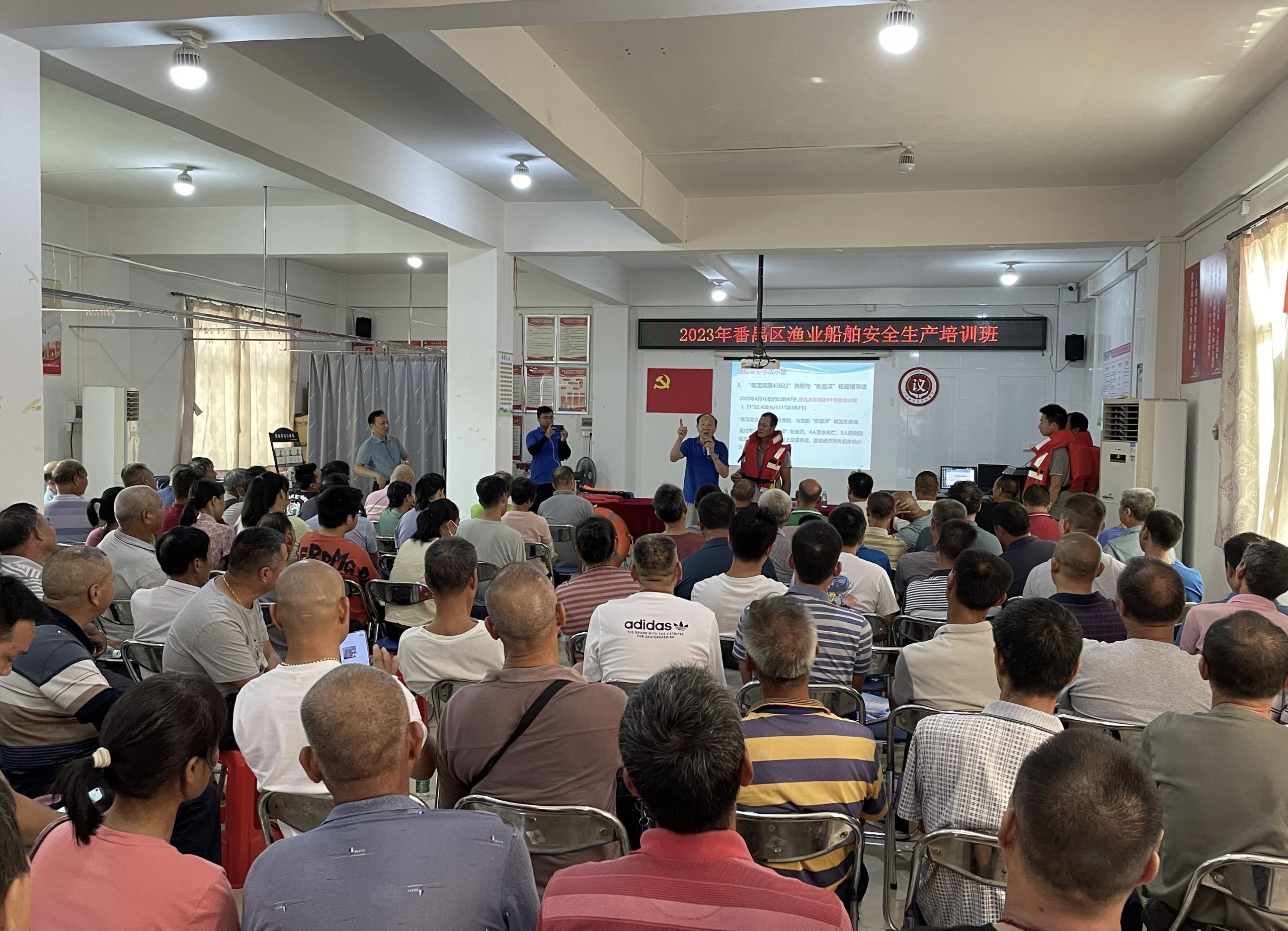 休渔前做好停泊点布置工作,番禺区广泛开展休渔宣传,举办渔民渔船专题培训班,联合海事、公安部门围绕商渔船避碰、AIS使用等知识进行教学。特别是开渔前夕强化渔船开捕安全生产的注意事项,就渔船防撞避碰、渔民水上应急救助、船上安全设备配置使用等方面进行了细致讲解, 发放水上从业人员安全培训手册等安全知识宣传资料,提升渔业船员安全生产意识、操作技能和应急处理能力。