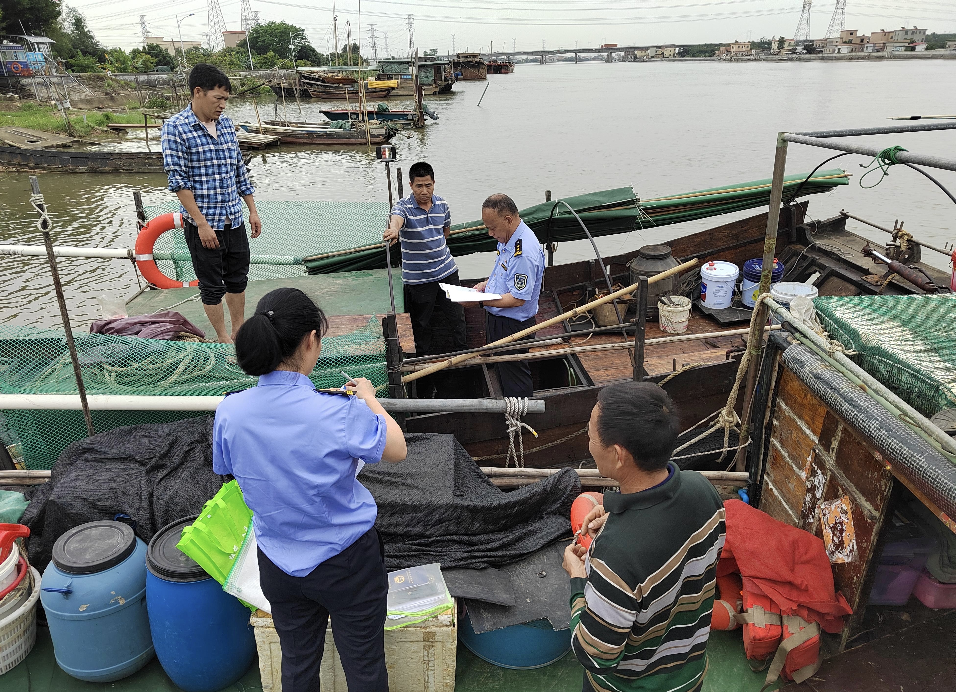 休渔期间,番禺区海洋综合执法部门对在港停靠的休渔渔船进行全面核实,查勘渔船身份标签、勘验渔船名号、进行船证比对,对非法加改装、擅自关闭或拆除渔船通导设备、渔船脱检脱管、船舶不适任、职务船员配备不齐、船员无证上岗等违规行为进行集中整治,共排查整改渔船隐患79项。开渔前对全区渔船再进行一次梳理,特别是对大中型渔船出港前再进行一次登船检验,确保“不安全、不出海”。