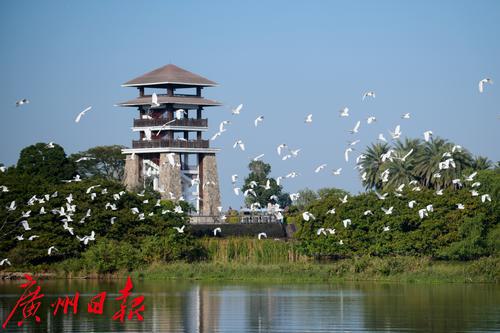 南沙湿地公园鹭鸟翩飞