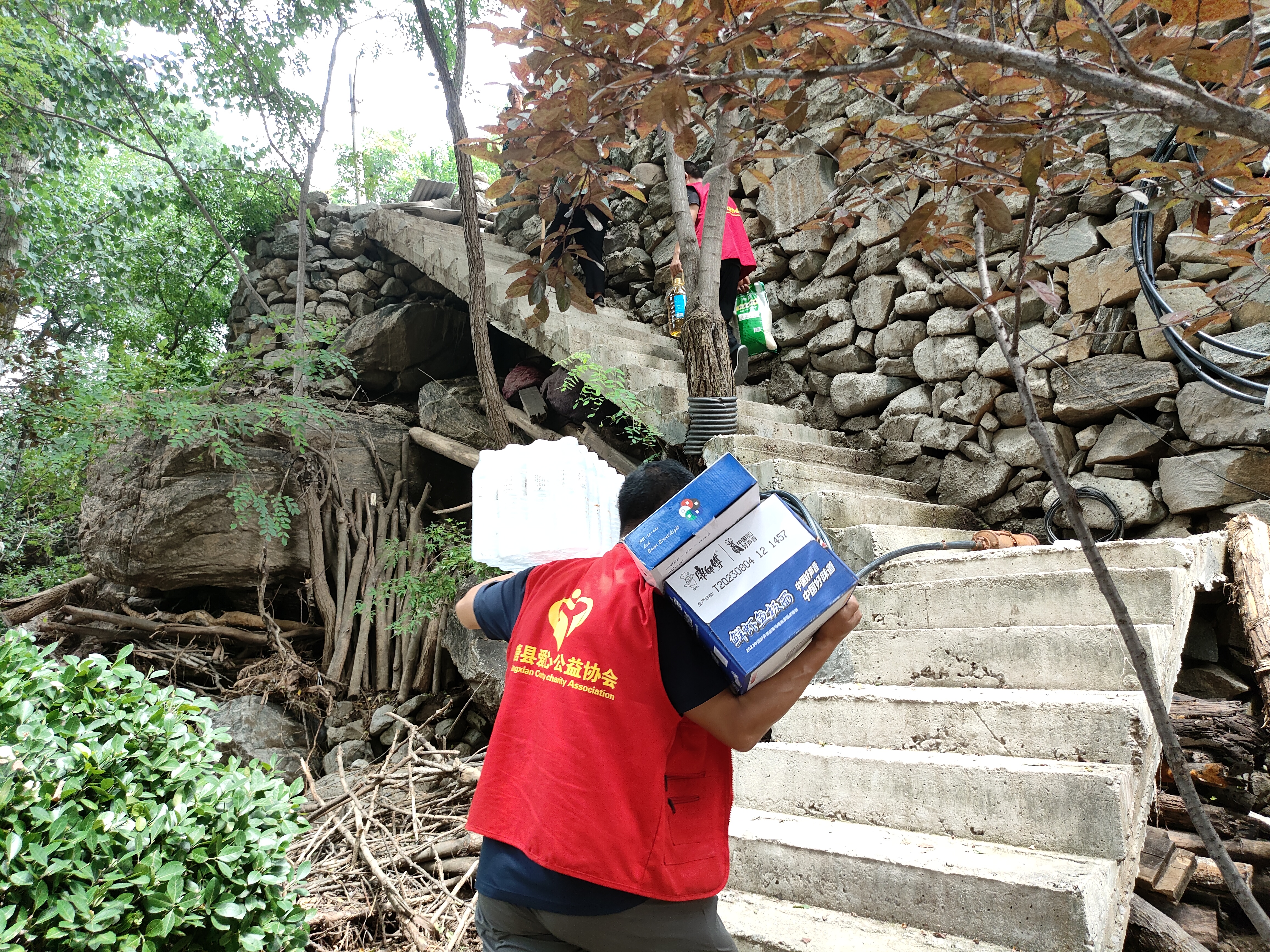 (爱德工作人员、当地合作伙伴和志愿者协同努力,把一批批物资送达受灾村庄与社区)