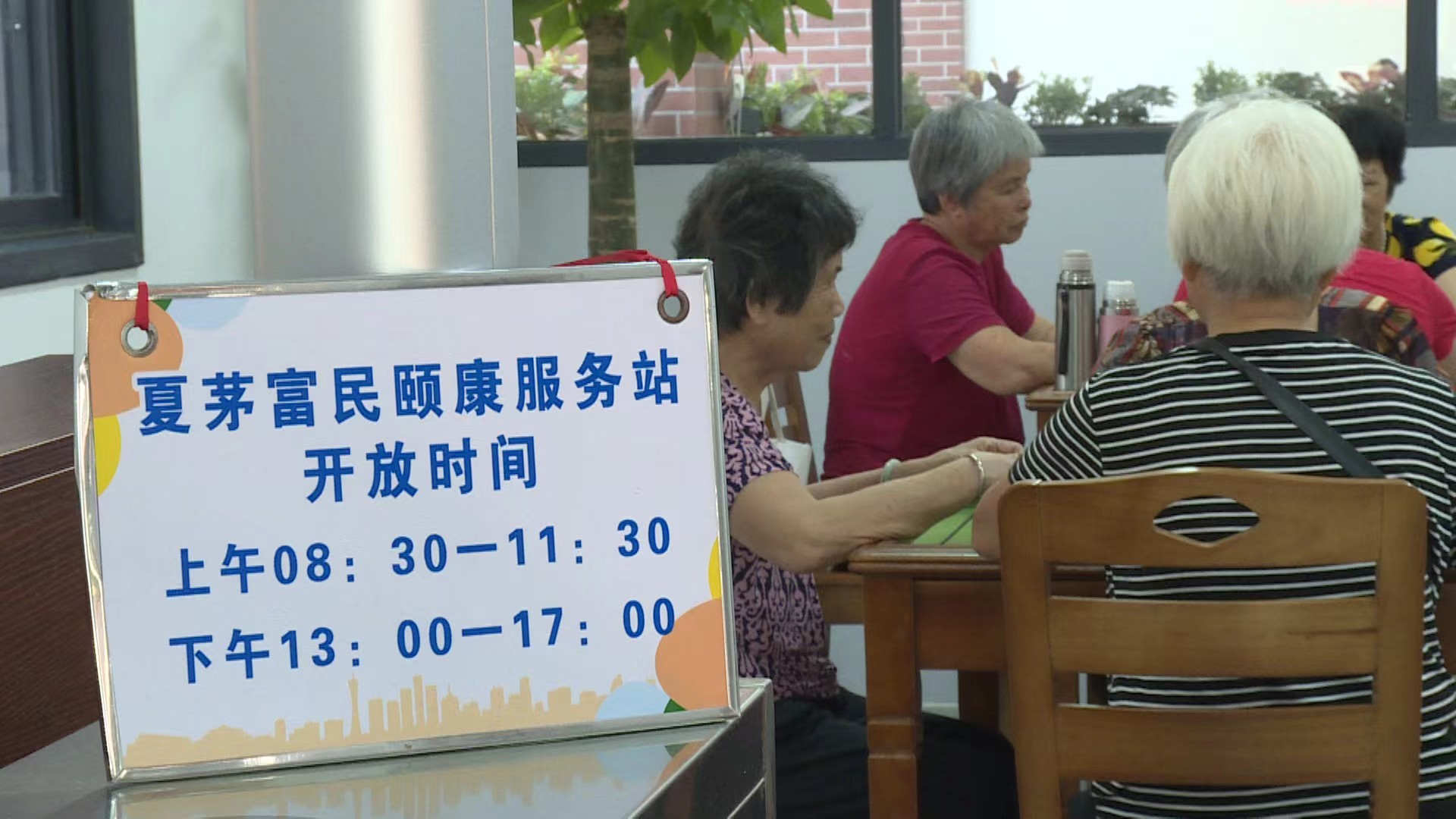 夏茅富民颐康服务站位于夏茅文化活动中心一侧,面积不大,但是功能很齐全。“可以在里面打牌、看电视、聊天,还有社区医院的医生每天到这里服务。”夏茅经济联社上述负责人介绍,服务站还配套了长者饭堂,提升老人的生活品质。 自从夏茅富民颐康服务站启用后,邓婆婆几乎每天都在这里度过,上午与朋友打打牌或聊聊天,中午就在长者饭堂吃饭。“一顿只要三块钱,比我自己在家里做饭更划算。”邓婆婆告诉记者。