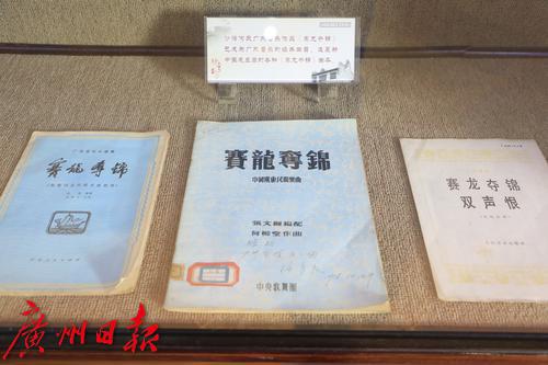 2004年,研究者们在何少霞故居发掘出《赛龙夺锦》的手书工尺谱。该曲引子部分先由唢呐演奏出雄赳赳的旋律,主体部分则以弹拨及拉弦跳动的音调,配合铿锵的锣鼓节奏,将沙湾地区流行的龙舟鼓点融入乐曲节奏,按照赛龙舟的顺序、动作来塑造音乐,充满浓郁的水乡生活气息。据梁谋考证,遗物中发现的《赛龙夺锦》已是该曲的第四稿。“何博众曾创作过一首曲子,叫《龙舟竞渡》,当时并没有写成书面曲谱,何柳堂把它写了下来,把曲名改成《赛龙夺锦》,之后与何与年、何少霞、陈鉴等反复研究,四易其稿,才有如今我们听到的经典之作。”