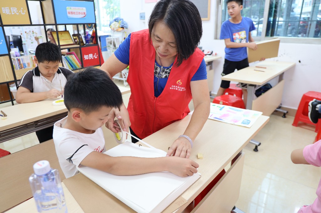 党群志愿者协助孩子完成手工任务
