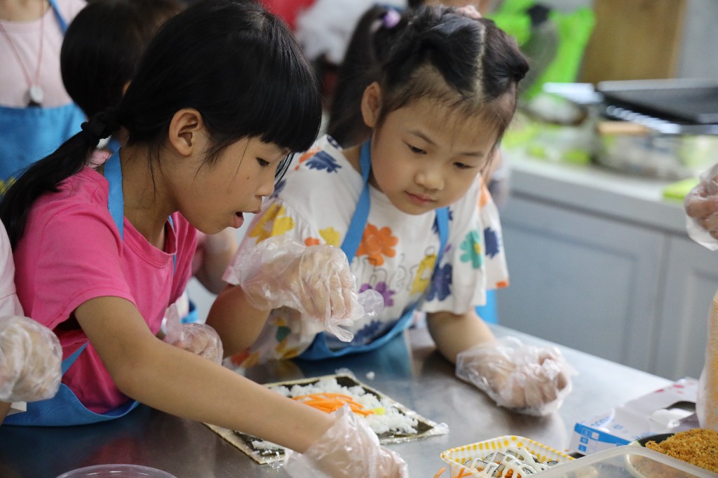 小朋友们专注于制作点心