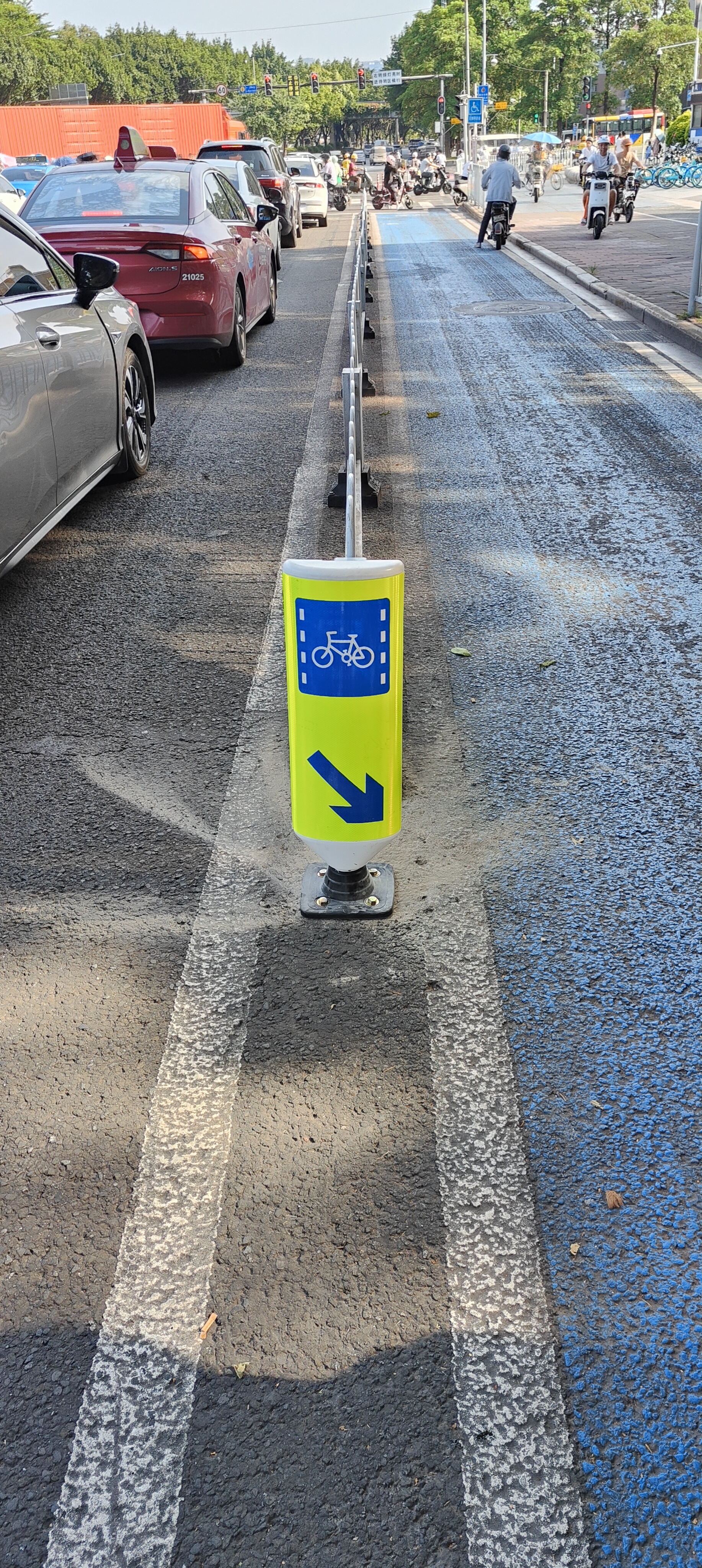 ▲非机动车道警示柱与3D警示标线