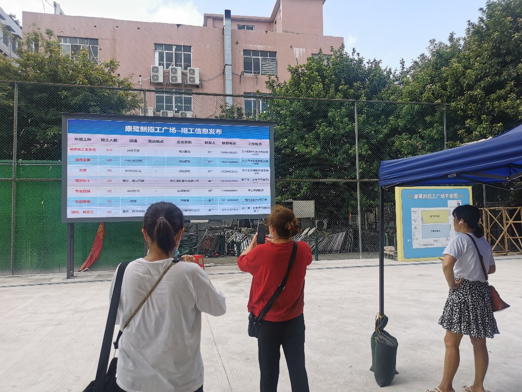 此外,广场上还有两个大屏幕,滚动播放用工方发布的招工信息,不少人站在大屏幕前仔细察看,还用手机拍下。“我帮朋友看的,拍下来看看有哪些合适的。”李女士说。现场设有服务中心、便民驿站,工作人员提供咨询、登记等服务,指导招工人员通过扫码填写招工或订单需求,将在大屏幕和平台上发布;另外,现场还设有医疗保障点,提供应急医疗救治、个性化体检(健康证、入职体检)、重点人群(65岁以上老年人等)免费体检等服务。